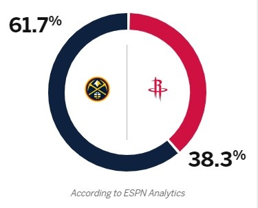 火箭全主力出战!ESPN预测明日胜率:火箭38.3% 掘金61.7%