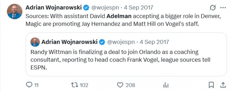 4月8日早晨,大卫-阿德尔曼从梦中醒来,看到了手机上的50个未接来电。他以为自己误了航班,没跟球队顺利会合,才让那么多人打电话来找他。 几分钟后,他得知了那条让他毫无准备的重磅消息:掘金解聘了总冠军功勋教头迈克尔-马龙,让他担任球队的临时主教练。而留给他的调整时间——只有最后三场常规赛。 大卫-阿德尔曼定了定神,打了他的第一个电话:给正在波特兰安享退休生活的父亲,里克-阿德尔曼。 “我得到了那个让我安心的答案。”大卫说。 “我跟他说,我没开玩笑,他说,‘真的吗?那对你来说,是个好机会啊……’” 大卫一开始觉得,父亲的反应有点太平淡了,但转念一想,这就对了。 “这就是我想要听到的答案,我需要有人告诉我,‘你要冷静下来’,而不是千篇一律的震惊和恭喜,我爸爸一定也在为我感到激动,但他知道我想要听到他说什么,他也知道我是个什么样的人。” ****** 很多人不知道的是,大卫-阿德尔曼其实并不是阿德尔曼家族二代中最懂球的那个——里克-阿德尔曼有6个子女,原本其中最被看好可以被篮球圈继承其衣钵被称为“小阿德尔曼”的是大卫的哥哥:RJ-阿德尔曼。 RJ完美继承了父亲的篮球天赋和智慧,但桀骜不驯自由浪漫的他并不喜欢被安排好的人生,大学时代他甚至干脆去读了法学院,毕业后顺利拿到学位,并在波特兰当地开始了执业律师生涯。 然而很快,RJ就厌倦了上流社会的虚与委蛇,在天赋的“引领”下,RJ最后还是被父亲带进了职业篮球圈,2001年,他进入超音速担任球探,随后在开拓者、国王、火箭等球队负责球员发展兼助教,不过可惜的是,职业篮球的压力让他染上了酗酒的毛病,随后他选择远离职业篮球,并一直在考虑自己之后的人生规划。 熟悉RJ的专栏作家克劳钦斯基说,RJ阿德尔曼最大的长处是他知道如何与那些“性格有缺陷的天才”沟通,他可以在需要粗鲁时粗鲁,在需要有品味时有品味——这几乎就是最完美的球员型教练材料。 很多人认为,NBA的教练圈一直在等待RJ回归——因为他确实做出了不少让人惊艳的东西,大家都知道是他的影响让阿泰斯特和威尔斯改邪归正,也是他让卢比奥和乐福在森林狼打出了生涯最高效的赛季,如果RJ愿意回归,很多球队愿意为他敞开大门。 还有一件事很能说明RJ的天赋,2011年夏天,刚刚输掉总决赛热火主帅斯波尔斯特曾经和RJ吃过一顿饭(两人的父亲在开拓者有旧交),当时RJ已经决定先离开职业篮球,结果这顿午餐持续了四个小时,RJ给斯波详细讲述了他父亲的普林斯顿体系,如何从开拓者到国王再到火箭的演变历程,他给斯波分析了如何部署詹姆斯、韦德和波什的场上位置和打法,用韦伯和迪瓦茨,还有姚麦组合如何协调适配作为例子。 “我都有点跟不上他的思路,”斯波回忆说,“他讲了他父亲的进攻体系如何演变,他们如何训练,如何让你手里最好的球员成为场上最好的球员,从A到Z,无所不包,这就是一堂进攻教学的大师课。” “这是我第一次彻底了解做一个职业教练需要细致到什么程度”——斯波这样说。 相比之下,大卫-阿德尔曼有着和哥哥截然不同的人生。 与RJ的桀骜不同,大卫是一个很听话的孩子,RJ在人生道路上会刻意选择避开阿德尔曼的影响,但大卫对此却并不介意。很小的时候,大卫就跟着父亲进到了开拓者的更衣室,然后成为了球队里最小的球童,他的工作是叠毛巾、给冰箱里放佳得乐,给球员打杂。 但在担任开拓者球童的第四年,大卫出了一次意外,当时他在帮球员拿球鞋时摔到了地上,他只记得左侧剧痛,想要上厕所,被人发现的时候他已经尿血了。 大卫被紧急送往医院,随后接受了紧急肾脏手术,手术伴随着并发症和副作用,医生在他的左侧开了一个口子,装了一个集尿袋。他还被注射了类固醇和高强度止痛药,这些药物存在抑制生长和削弱韧带的风险。 大卫原本的梦想是成为职业球员,但在这些药物的影响下,大卫的身高发育停止的很早,而他也是全家人里最矮的——父亲1米85,哥哥1米91,他1米75。某种意义上说,他的篮球梦想终结于12岁,而在做教练这件事上,他的身高又让他天然没有那么强的气势。 所以多年后,当大卫准备进入职业篮球教练圈的时候,父亲给他的态度和给RJ的完全不同——有天赋异禀的RJ存在,阿德尔曼并不完全赞同大卫也进职业篮坛来卷,但倔强的大卫坚持自己的选择,干脆从家乡的基层高中教练干起。 大卫阿德尔曼在做高中教练时拿下了三次城市冠军,这也是他教练生涯的起点 直到父亲退役前三年的2011年,大卫才以球员发展教练的身份进入NBA的领域(也是哥哥决定离开职业篮坛的那一年,这也是两人唯一一次共事),不过在这之前,他一直都在默默地观察着父亲。 他记得父亲的意气风发,记得球队的行云流水,但他更记得的是,1992年总决赛输给公牛队之后父亲的落寞——他躲在更衣室的一个小角落里,不想让任何人打扰。 再后来,在2002年西部决赛第七场输给湖人队之后,他又一次亲眼看到了父亲因为失落而潸然泪下。 大卫-阿德尔曼把这些都看在心里,而这些东西,都将成为他的财富。 ***** 2016年,锡伯杜执掌森林狼,第一时间他就将球队大换血,大卫-阿德尔曼旋即离开球队——这是他第一次在父亲的影响范围外试图自己开拓事业,随后他加入了沃格尔在魔术的教练组,一年后,他的工作能力得到了迈克尔-马龙的认可,马龙将他招入麾下。 至此,大卫-