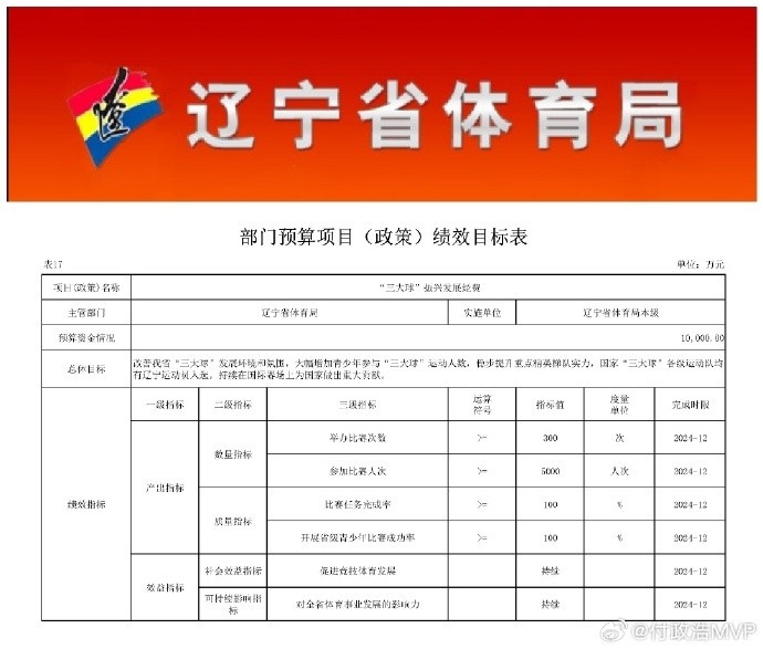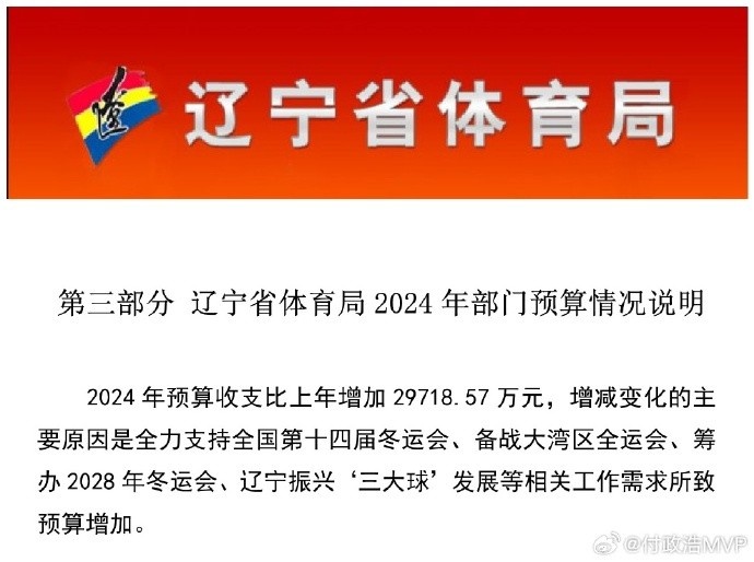 辽宁体育局说明2024年部门预算增加内容 三大球振兴发展经费1亿元